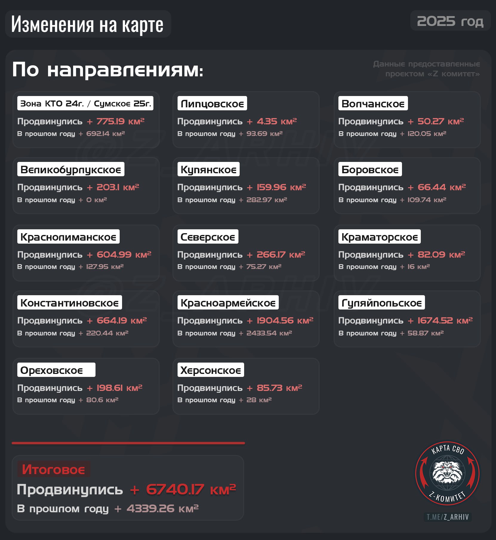 Фиксация продвижения ВС РФ по итогам 2025 года