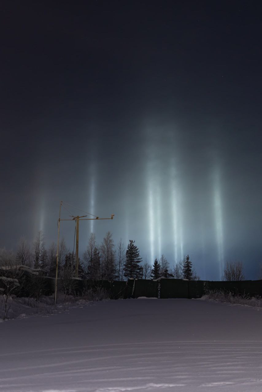 В новогоднюю ночь в окрестностях Гарболово и Вартемяг можно было увидеть и световые столбы, и даже лунное гало.