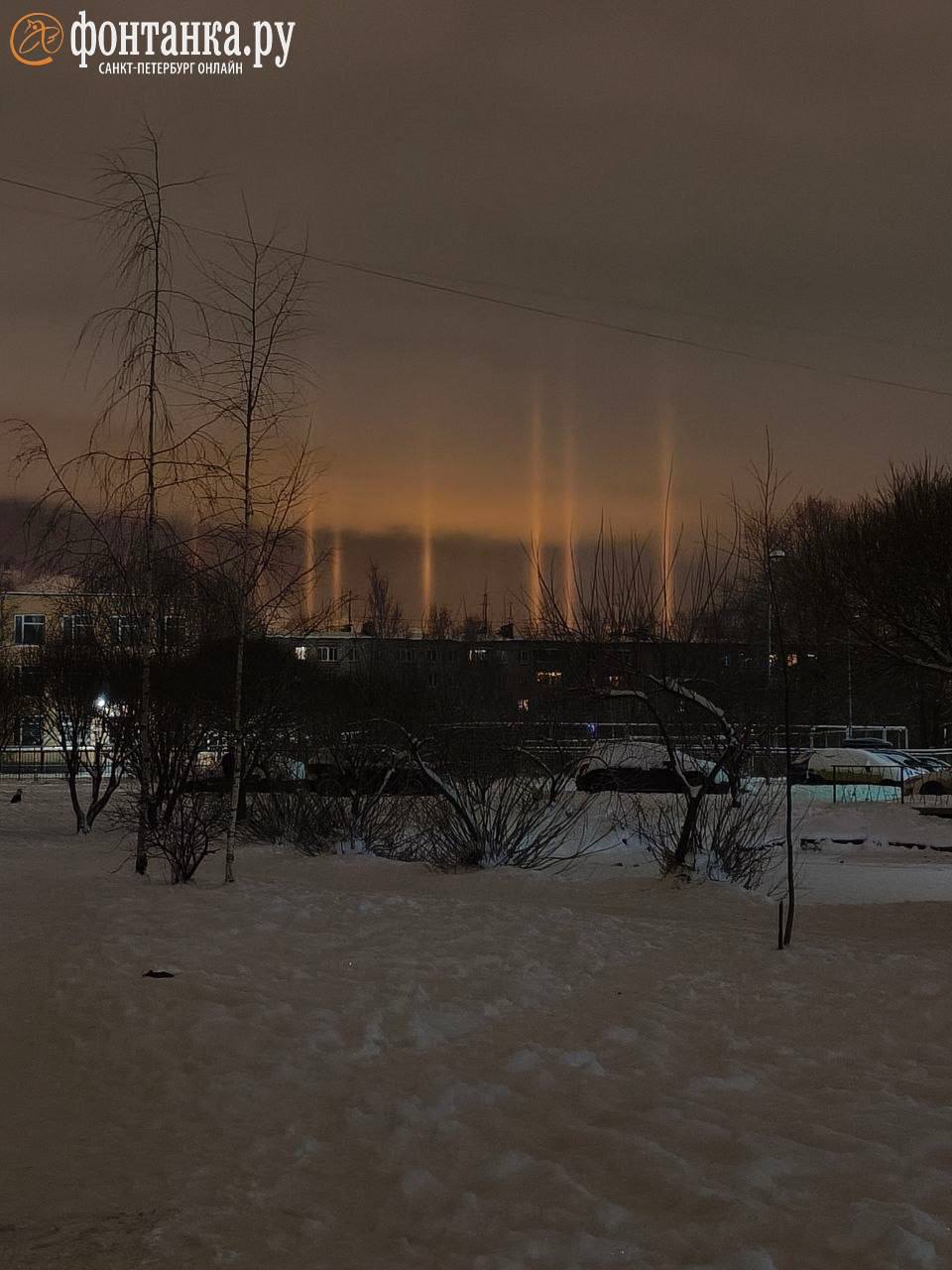А теперь смотрите, какие световые столбы запечатлел наш читатель Игорь в Шушарах.