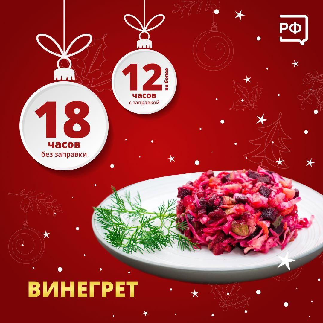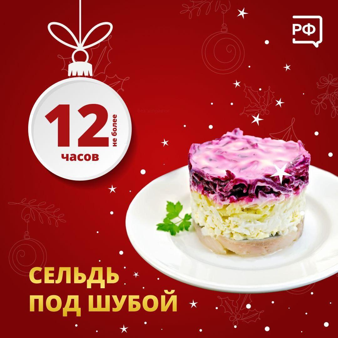 Комитет по здравоохранению Ленинградской области напомнил о сроках годности самых популярных новогодних угощений. Например, «Оливье», «Селедка под шубой» и «Винегрет» с заправкой, а также холодец хранятся не более 12 часов.