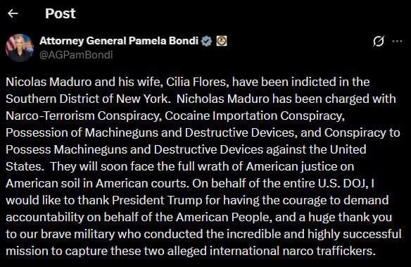 МИД РФ просил внести ясность с похищением Мадуро? Ну вот, внесли.