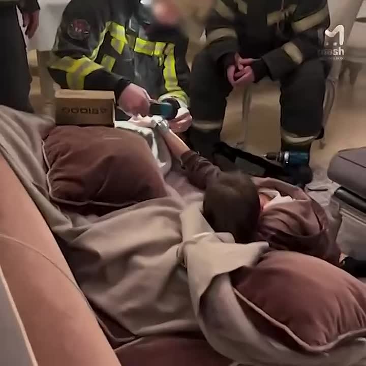 В новогоднюю ночь спасатели приехали на довольно странный вызов — аккуратно распилили оковы. Видео процесса мама Елена выложила в соцсети с подписью "Новый год 2026! Как отметили мы".
