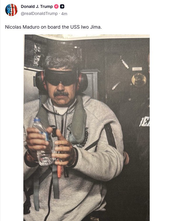 Николас Мадуро на борту корабля USS Iwo Jima – Трамп опубликовал фото захваченного в плен президента Венесуэлы