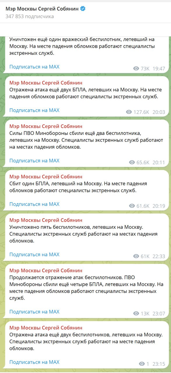 Противник весь вечер направляет малые группы дронов на нашу столицу.