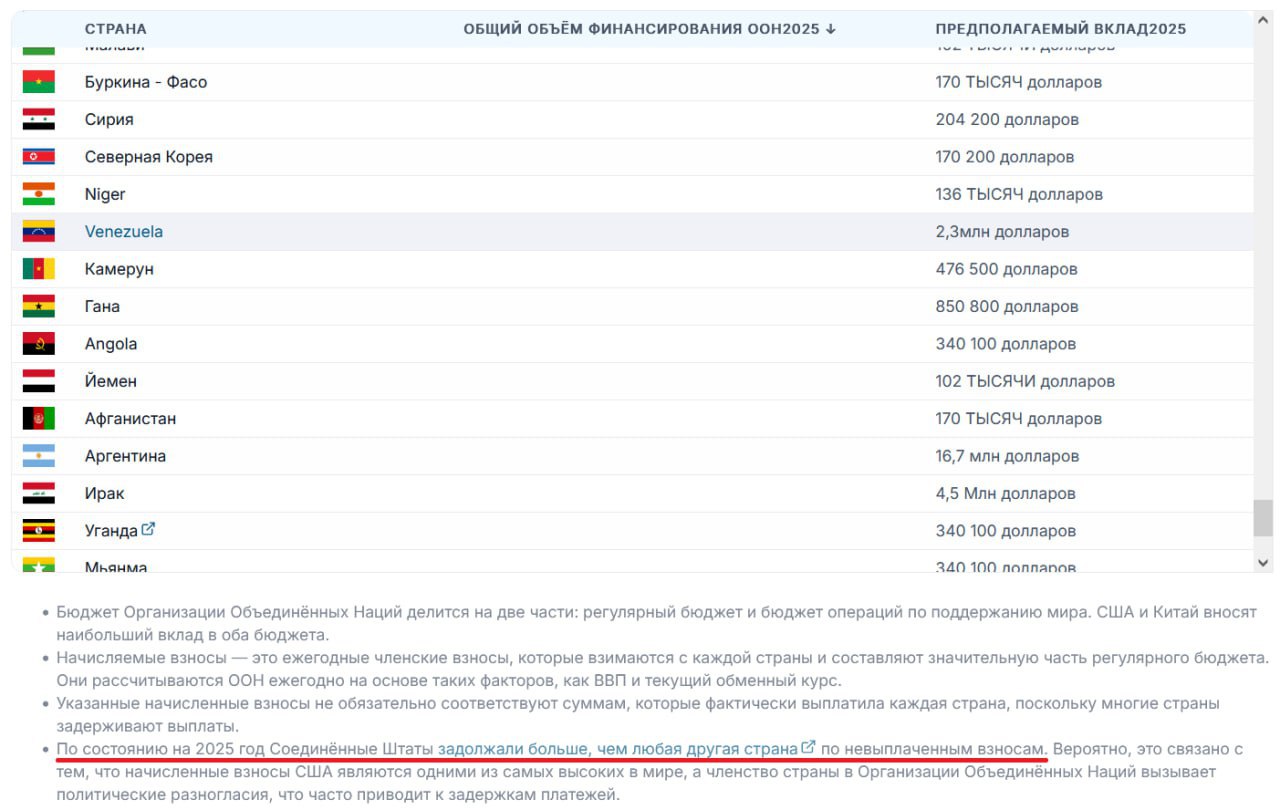 Но на самом деле запрет на агрессию работает избирательно. И для кого-то, судя по данным неплатежей Вашингтона в кассу ООН, ещё и абсолютно бесплатно. А вот Венесуэла за этот урок заплатит дорого.