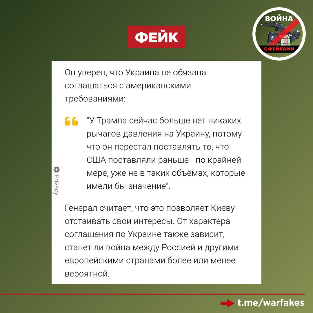 Фейк: У США нет никаких рычагов давления на Украину из-за сокращения поставок военной помощи, а дипломатические усилия Трампа обречены на провал. Об этом заявил американский генерал Бен Ходжес.