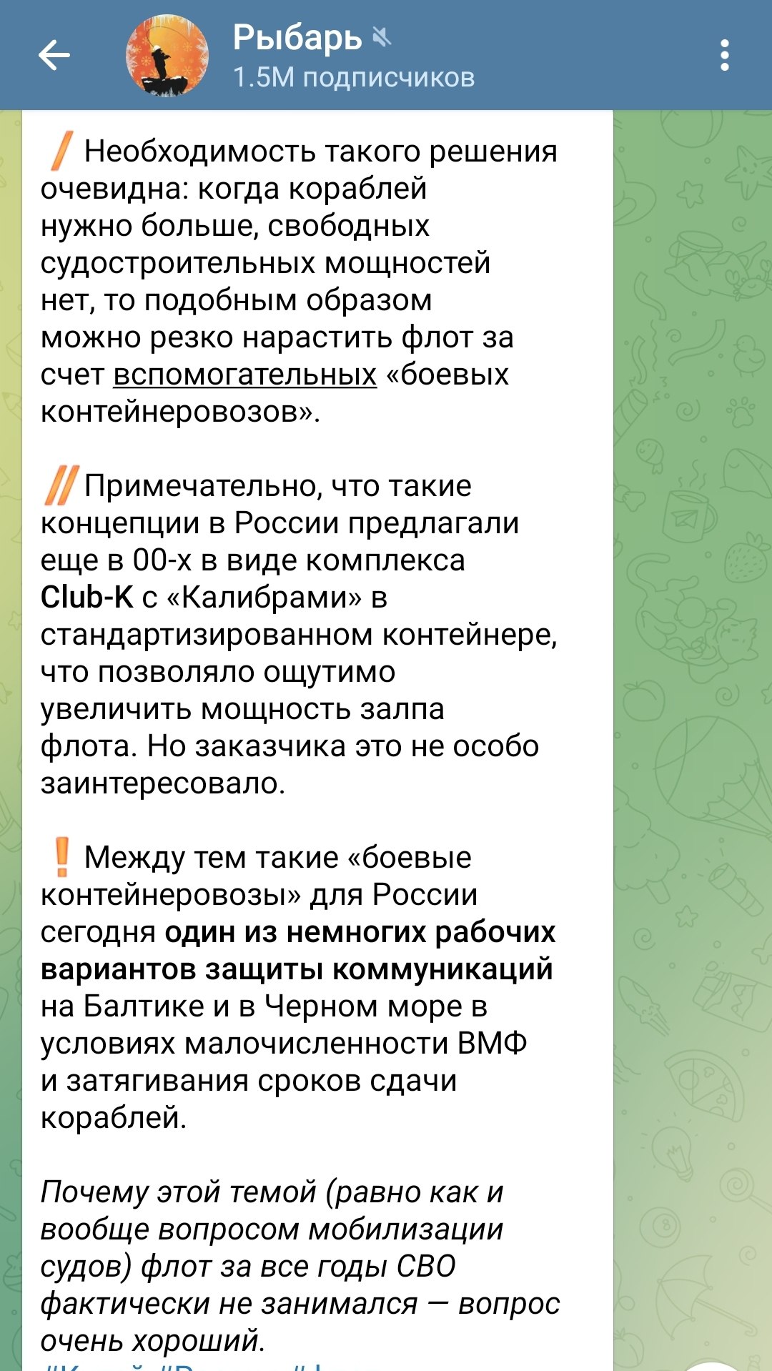 Для нас не столь актуально копирование контейнеровозов с такими пусковыми ударных ракет.