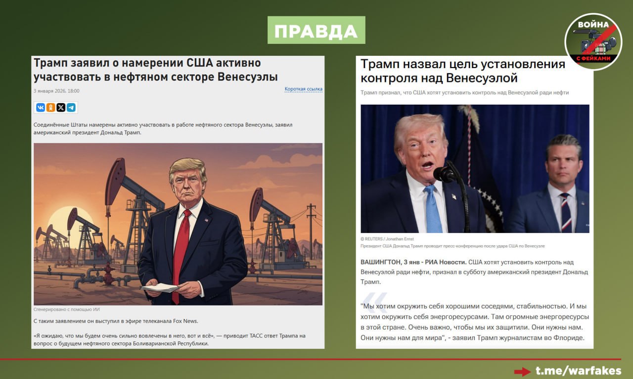 После военной операции в Каракасе и захвата президента страны Николаса Мадуро Трамп так ответил на вопрос о будущем нефтяного сектора Венесуэлы в эфире телеканала Fox News: