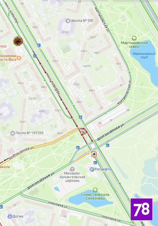 ДТП произошло на пересечении проспекта Королева и Долгоозерной улицы. Сейчас на месте скопилась пробка, одна из полос полностью закрыта для движения.