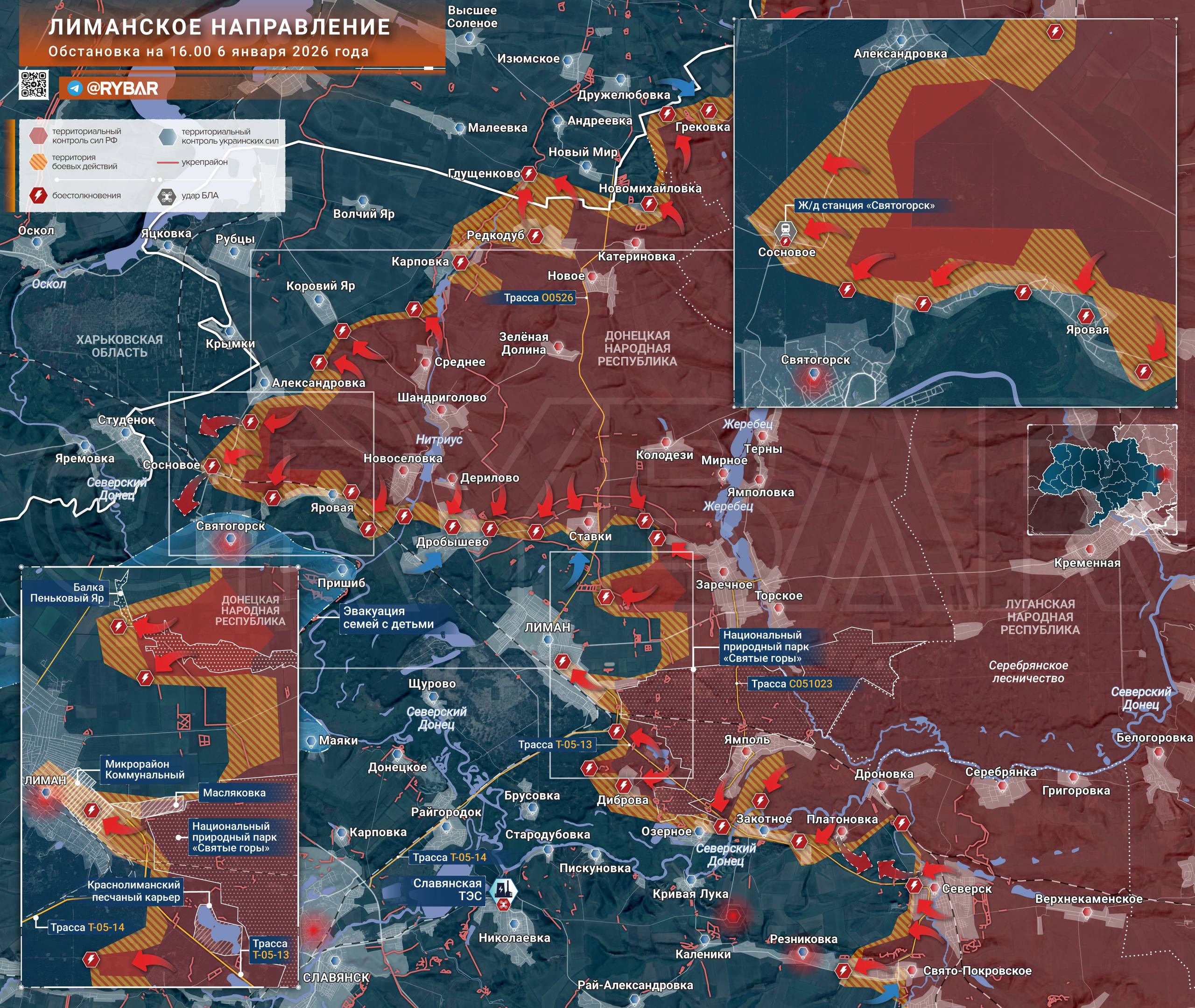 Практически на всем южном фланге направления боевые действия сконцентрированы в массиве парка «Святые горы». Российским войскам это дает некоторое преимущество, поскольку густая растительность скрывает штурмовые группы от дроноводов противника даже в условиях зимы.