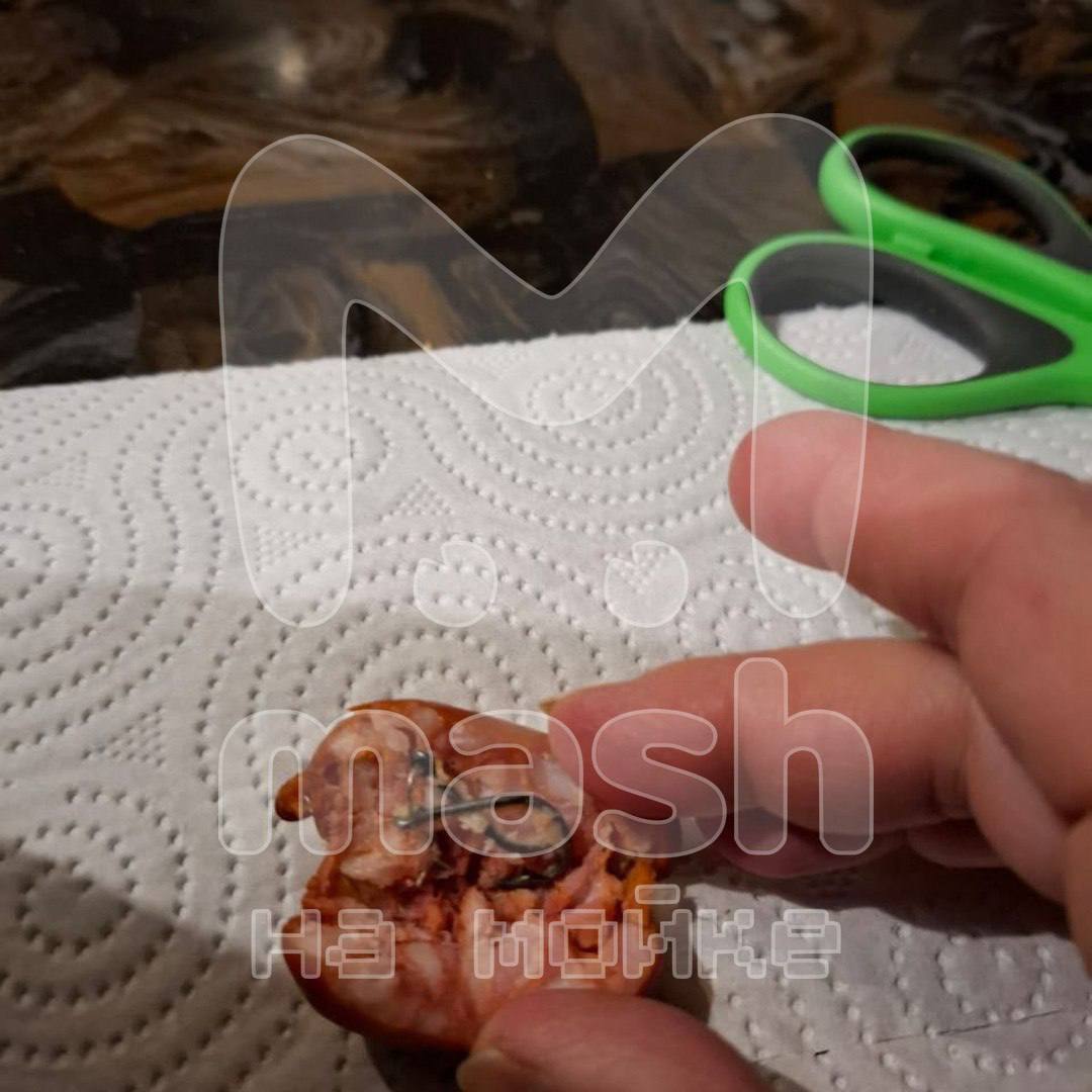 Местные жалуются: нашли мясо, в котором были спрятаны смертельно опасные для животных крючки. Один из собачников на прогулке заметил, как пёс тянет его в сугроб и вовремя среагировал, подобрав начинённый острым железом кусок.