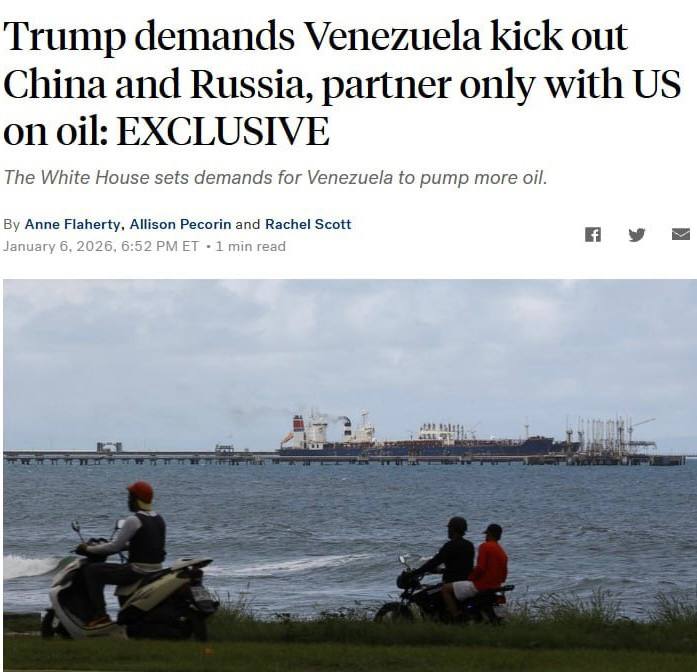 «Трамп требует от Венесуэлы прекратить все связи с Россией, Китаем, Ираном и Кубой, и согласиться на исключительное сотрудничество с США в сфере добычи и продажи нефти».