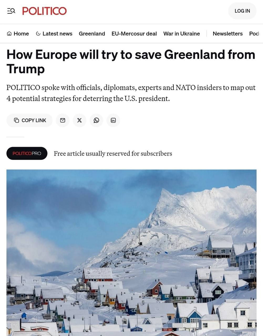 "Европейским странам следует рассмотреть возможность развёртывания войск в Гренландии, если об этом попросит Дания, для увеличения издержек потенциальной военной акции США",