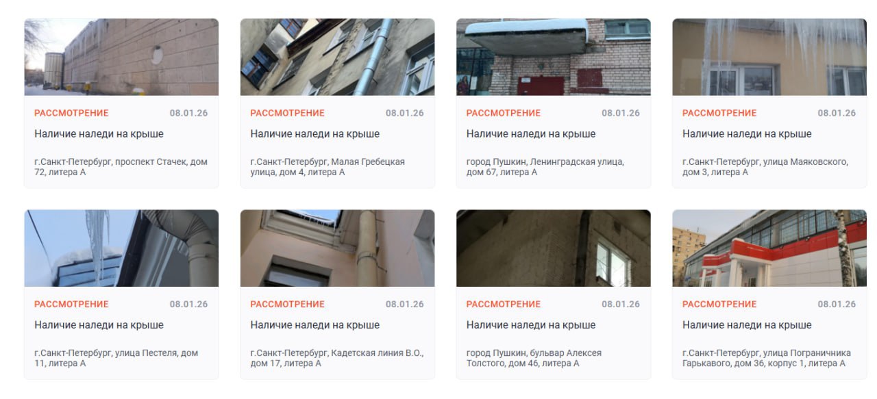 С начала 2026 года на портале «Наш Санкт-Петербург» появилась уже 171 жалоба о наличии наледи на крышах домов.