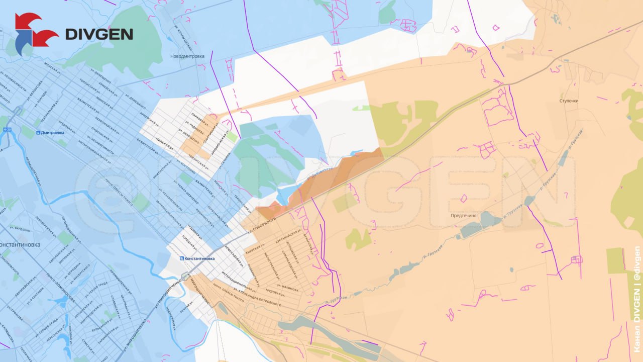 - Юго-восточная окраина Константиновки. Штурмовые группы вошли в садовое товарищество «Химик».