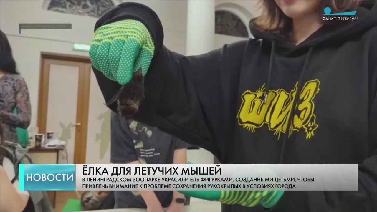 В Ленинградском зоопарке украсили ель фигурками летучих мышей.