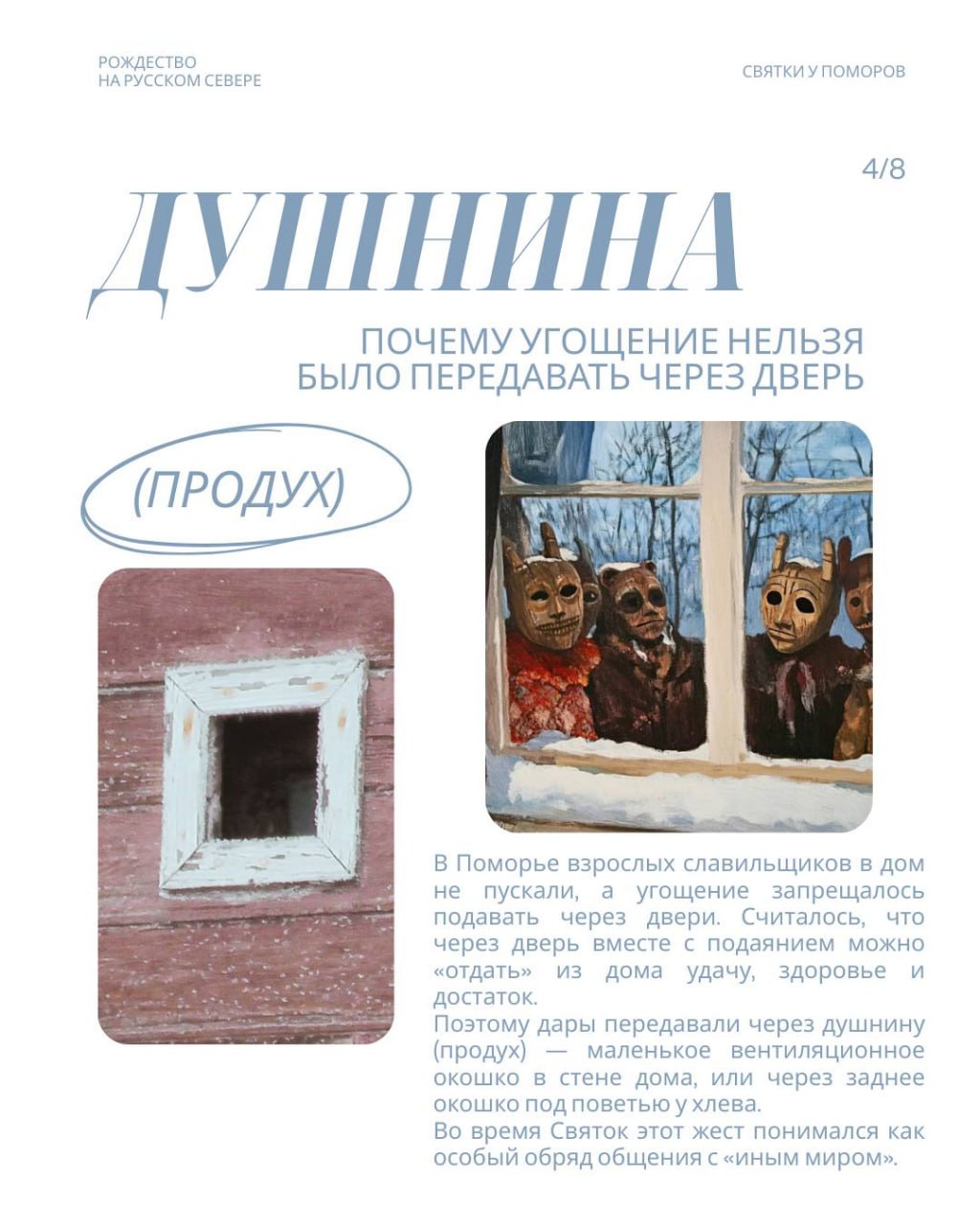 И что душнина - это не только неприятный человек. Узнайте про святочные верования поморов из карточек.