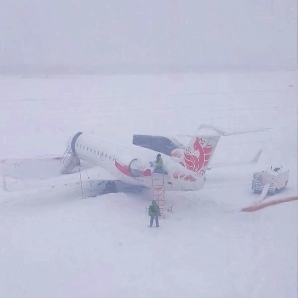 Самолет застрял в снегу при попытке вырулить на ВПП в петербургском аэропорту. Из-за сильного ветра некоторые борта приземляются боком.