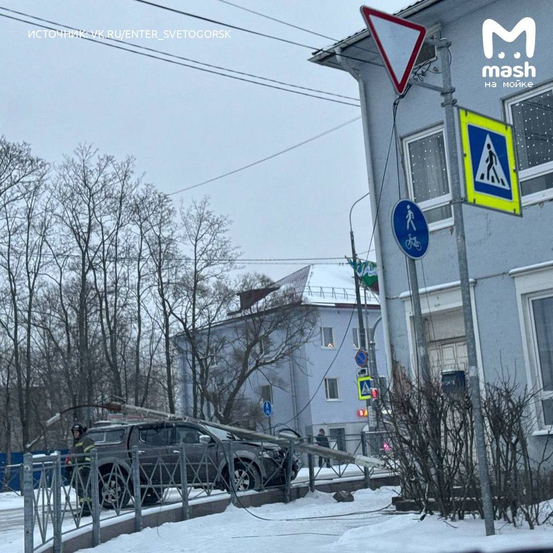 Фонарный столб насмерть зашиб врезавшегося в него водителя Mitsubishi в Светогорске ЛО.
