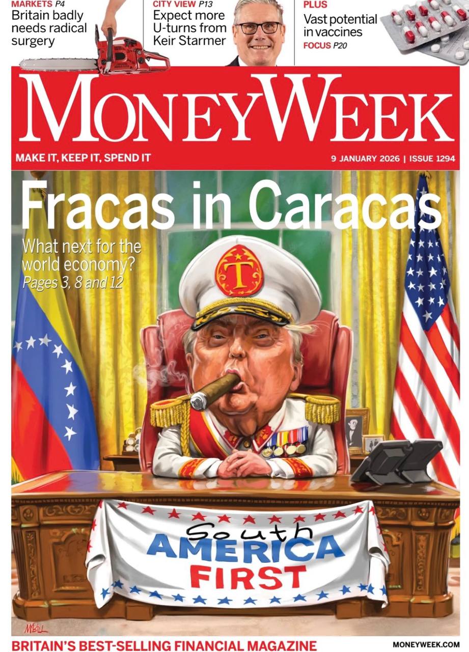«Скандал в Каракасе» (по-английски сочетание звучит веселее: «Фракас - Каракас»). Так финансовый еженедельник Money Week представляет себе нового правителя Венесуэлы. Как видите и лозунг «America First» уже видоизменился: «Южная Америка сначала».