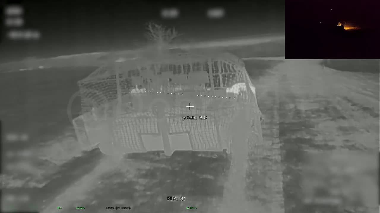 Несмотря на то, что боевая машина имела антидроновую защиту, это не помогло ей пережить удар даже одного дрона на оптоволокне и техника загорелась как спичка.