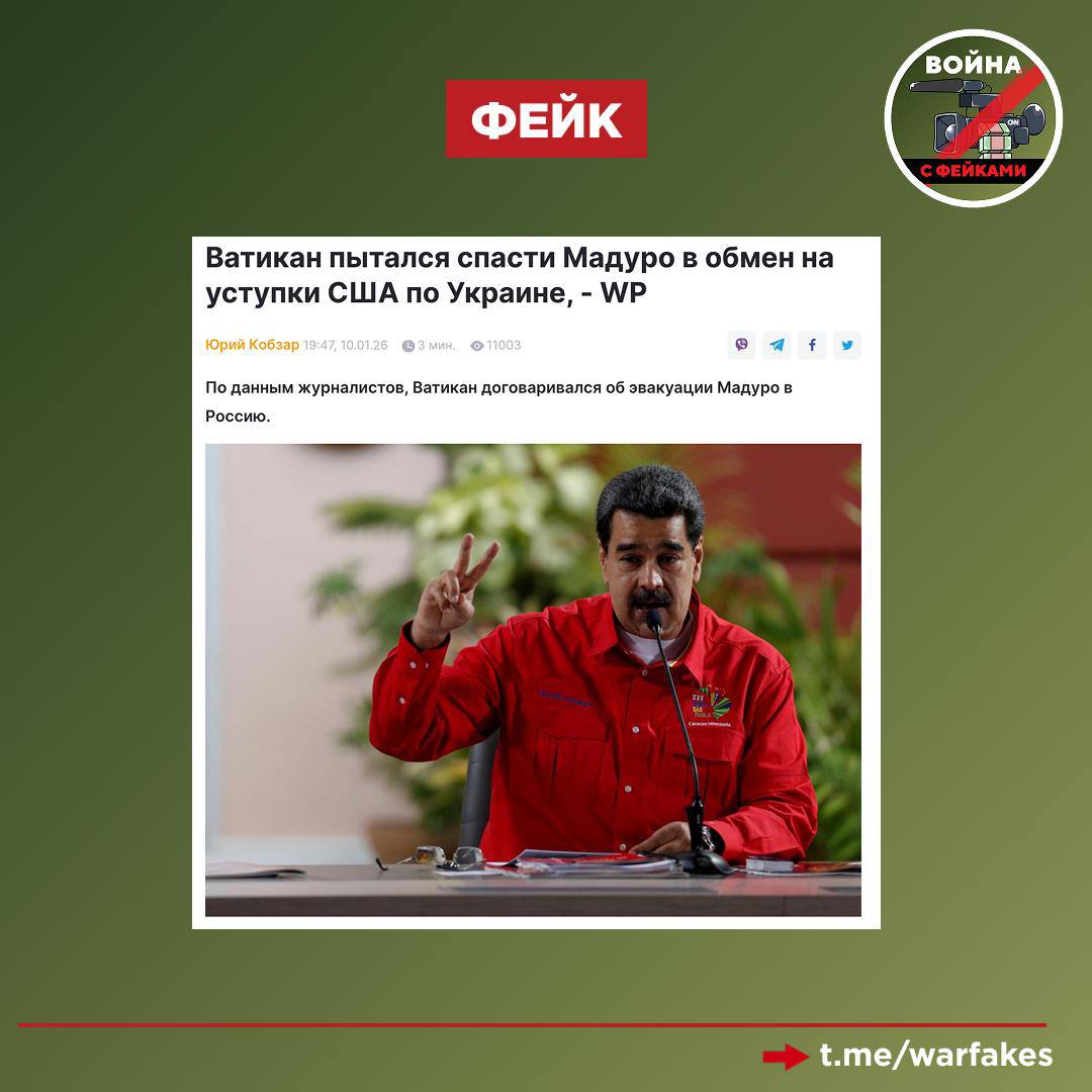 Фейк: Ватикан договаривался с российской стороной об эвакуации президента Венесуэлы Николаса Мадуро в РФ перед его захватом американцами, утверждают украинские и западные СМИ