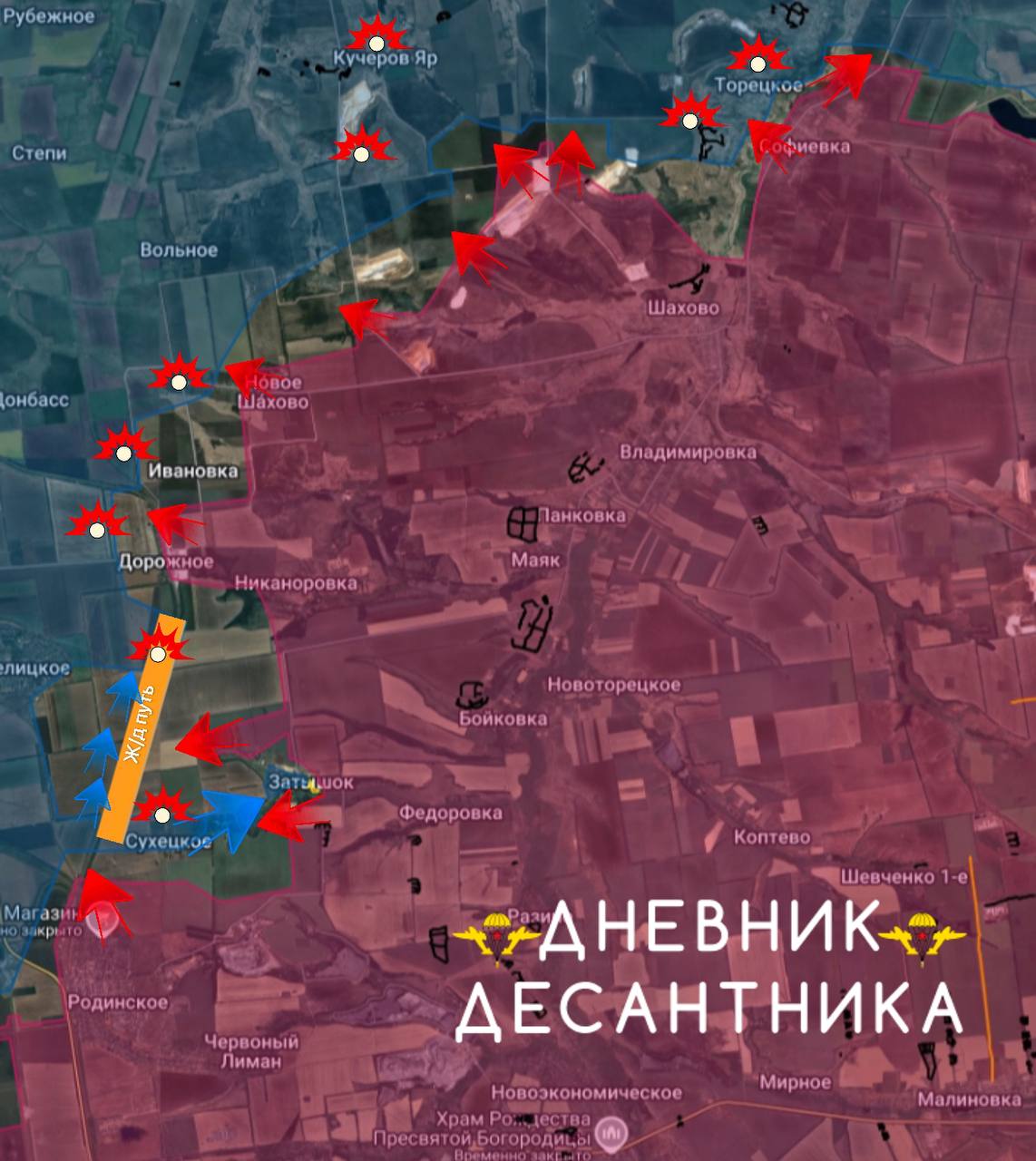 У Сухецкого и Суворово (Затышок) обстановка сложная, из-за выстроенной врагом логистики, хохлы на Суворово заходят через Сухецкое, и чтобы нам продвинуться западнее, необходимо для начала перекрыть логистику ВСУ.