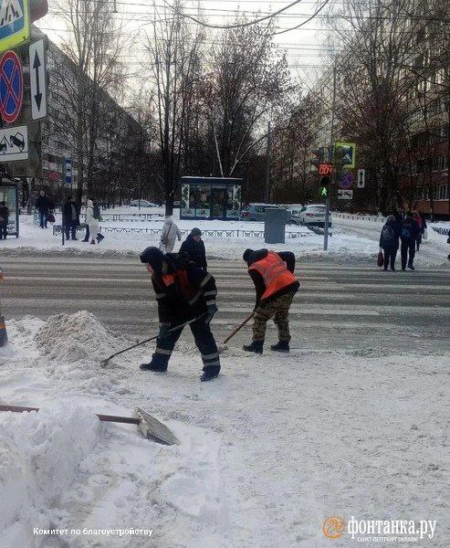 «Сейчас задействованы все резервы коммунальных служб, чтобы и сегодня, и главное к понедельнику проезжая часть и тротуары были готовы принять потоки автомобилей, общественного транспорта и пешеходов», — заявляет комитет по благоустройству.