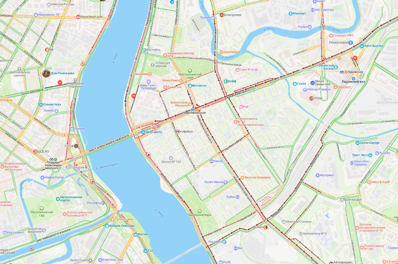 Гораздо веселее начало рабочей недели проходит на другом берегу Невы — взгляните на онлайн-карты.