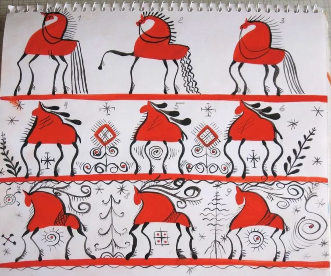Марат Баширов: Примеры Мезенской росписи. Одни красные кони в Год Огненной Лошади
