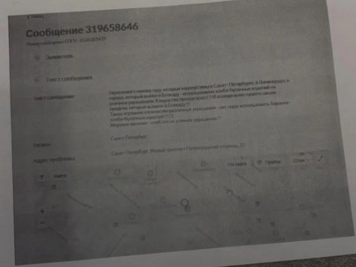 Анонимный заявитель усмотрел в таком декоре «кощунство» и «осквернение памяти предков». Впрочем, в письме от администрации Петроградского района о концептуальной неуместности собственно баранок ничего не говорится. Спорный декор салон флористики убрал.