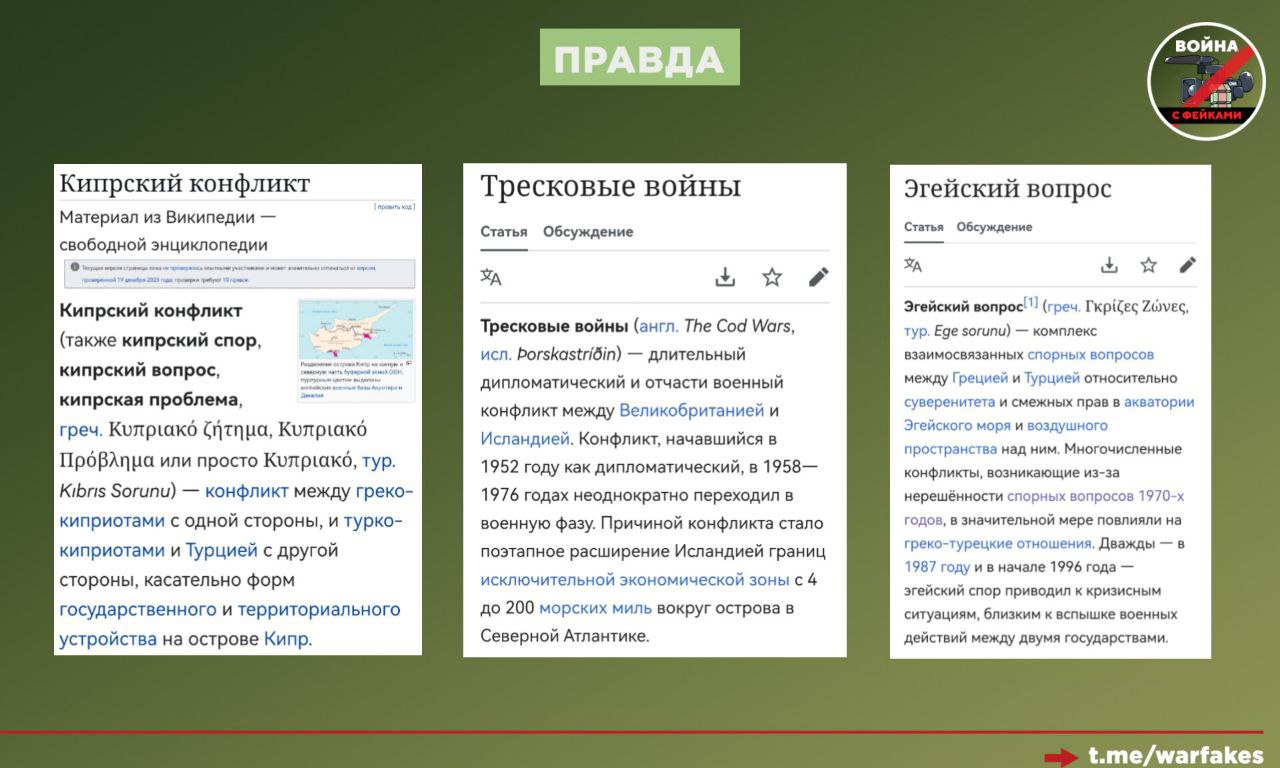 Правда: Такие прецеденты уже были. Яркий пример — кипрский конфликт между Грецией и Турцией. Они уже полвека не могут договориться о форме государственной и территориальной организации Кипра. И Греция, и Турция являются членами НАТО.
