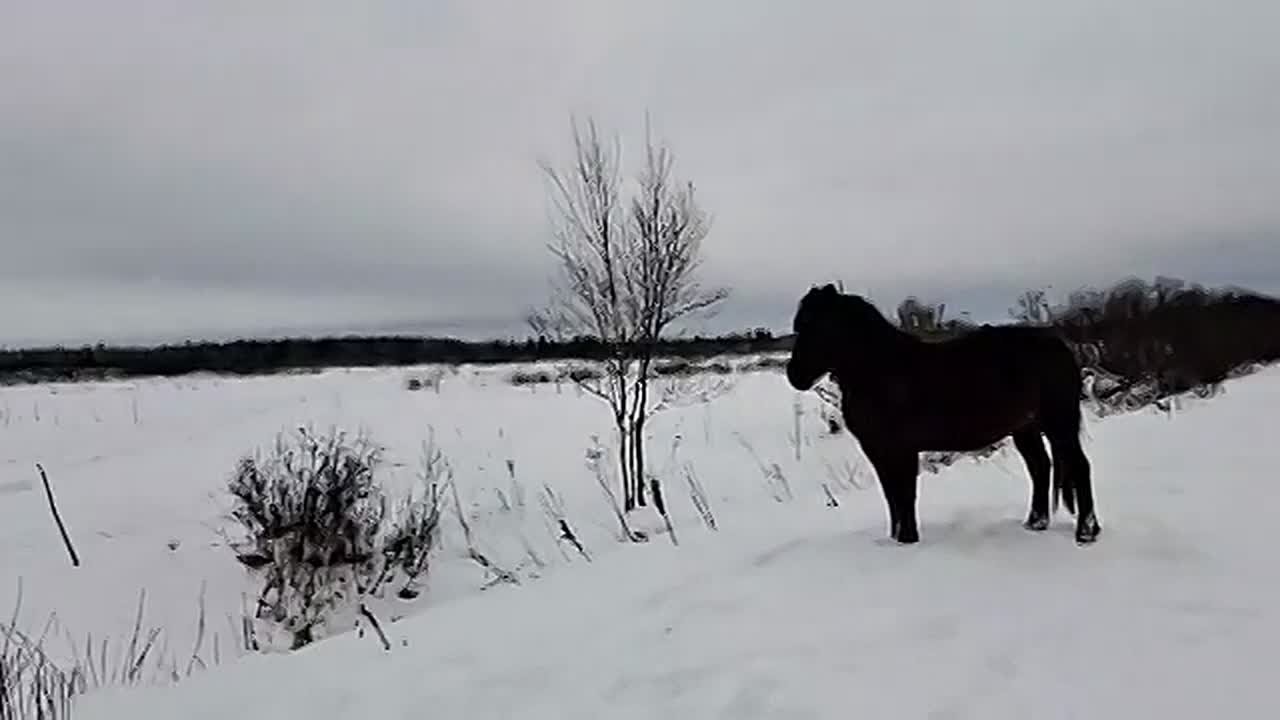 Инспектора Охотнадзора в заснеженном лесу под Тосно приветствовал табун лошадей