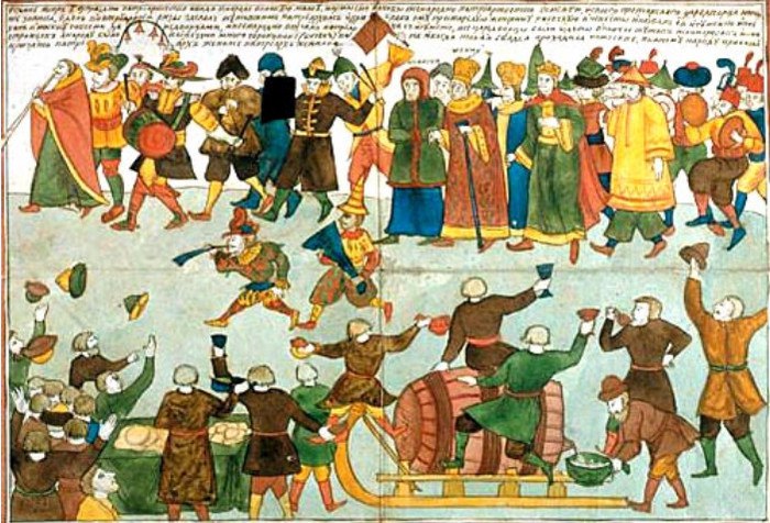 На изображении (лубке XVIII века): "Всешутейший, всепьянейший и сумасброднейший собор" Петра I