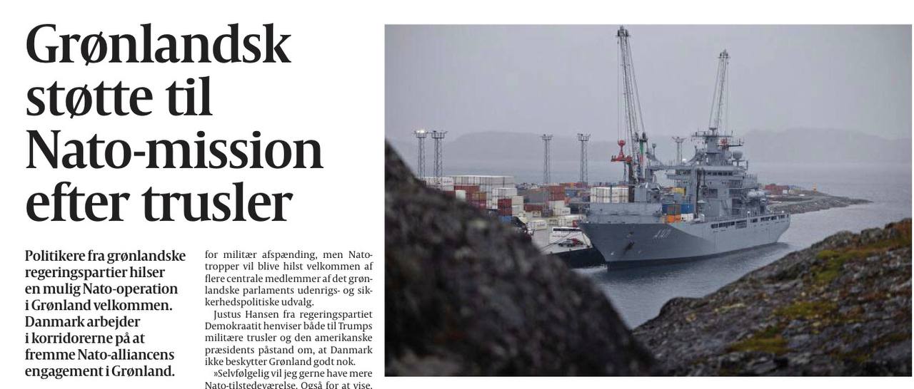 Забавно, что датчане сразу же забыли повод «введения натовских войск в Гренландию», которое предлагают европейцы. Напомню, официально Европа объявила, что готова ввести свои войска, понимая озабоченность Трампа «российской и китайской угрозой» острову.