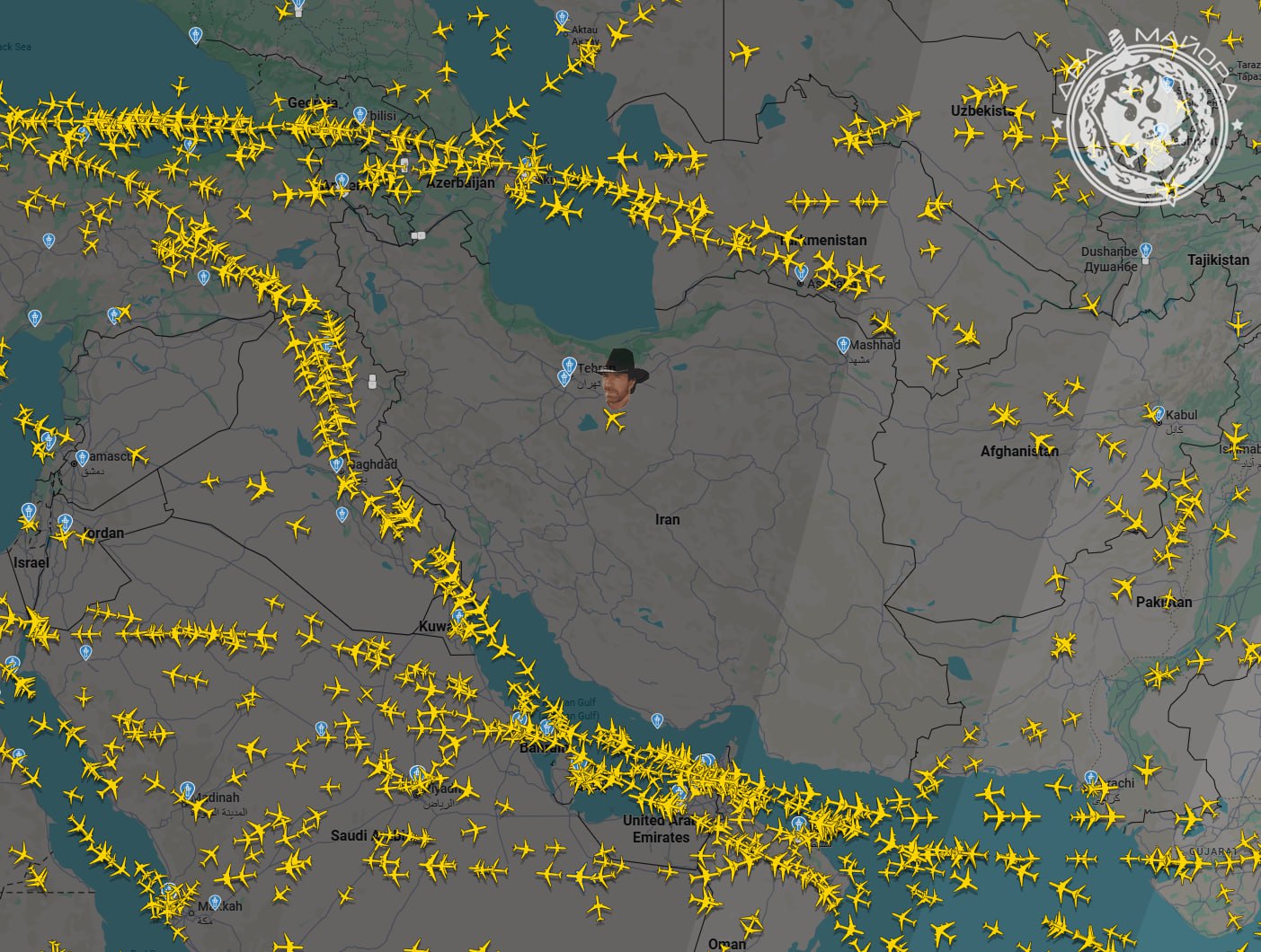 Ночью Иран выпустил уведомление NOTAM об официальном закрытии воздушного пространства страны для всех гражданских рейсов.