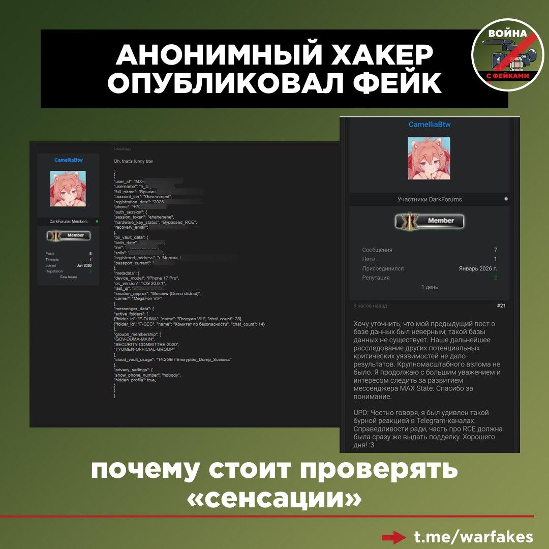 В среду, 14 января 2026 на специализированном хакерском форуме появился пользователь с ником CamelliaBtw — якобы впервые зарегистрировавшись на этом ресурсе. Едва появившись, он опубликовал сенсационную новость: личные данные миллионов россиян утекли из мессенджера MAX после масштабного взлома.