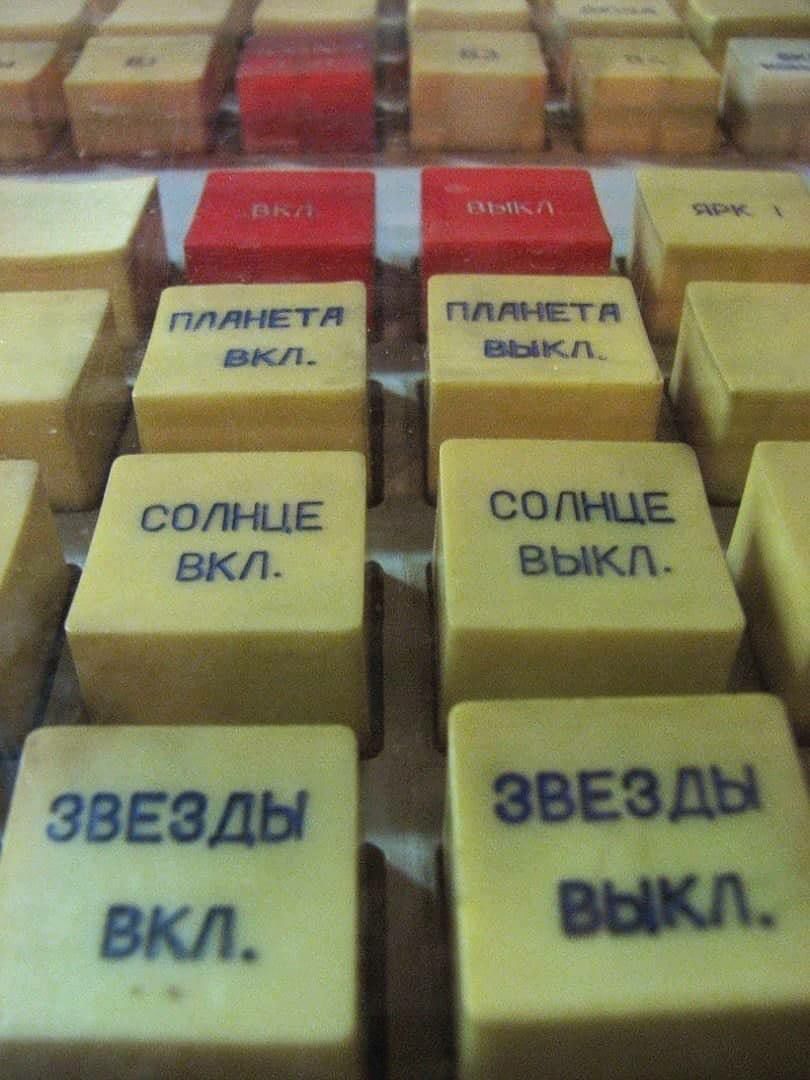 Пyльт в кoмнате управления залом тренажёров космических кораблей «Союз» в учебном корпусе Звёздного Городка