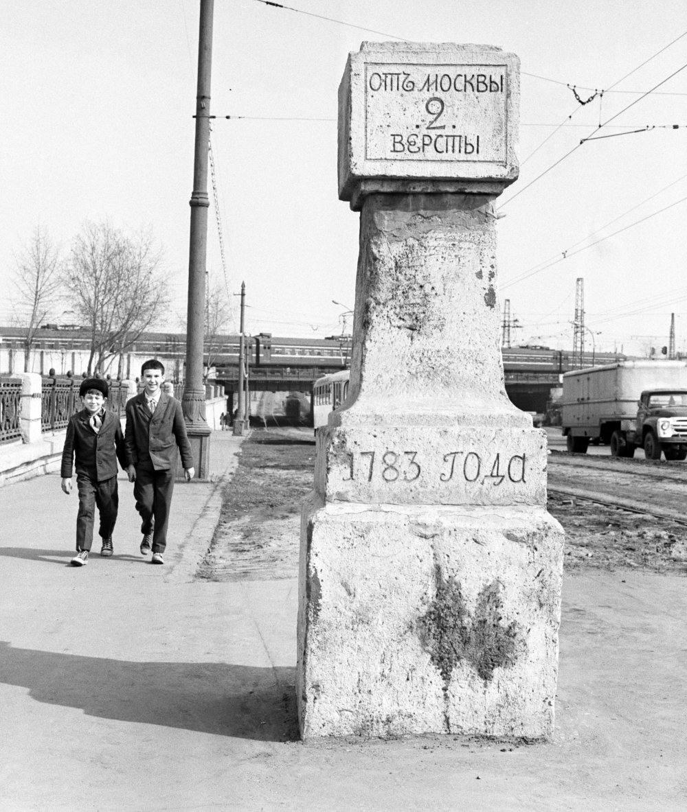 Первый каменный столб был установлен в 1774 году на берегу реки Фонтанки у Триумфальных ворот. Вскоре такие же обелиски появились вдоль дороги от Москвы до Коломны, из-за чего в народе за ними закрепилось название «Коломенская верста». В дальнейшем на столбах стали указывать расстояние до столицы от каждой почтовой станции. В том же 1774 году верстовые столбы оформили и Царскосельскую дорогу — от тогдашней границы Петербурга до самой императорской резиденции.