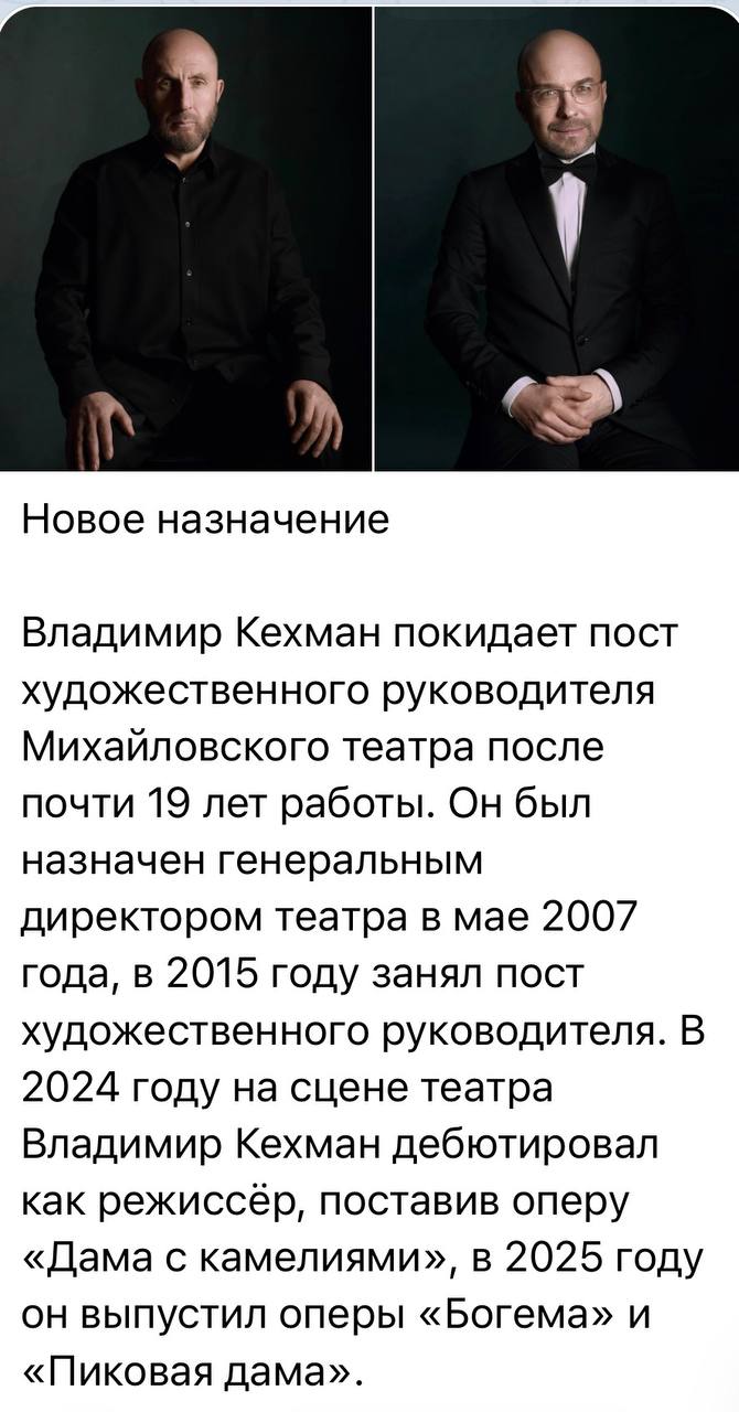 В комитете по культуре и Михайловском театре подтвердили расставание с Владимиром Кехманом.