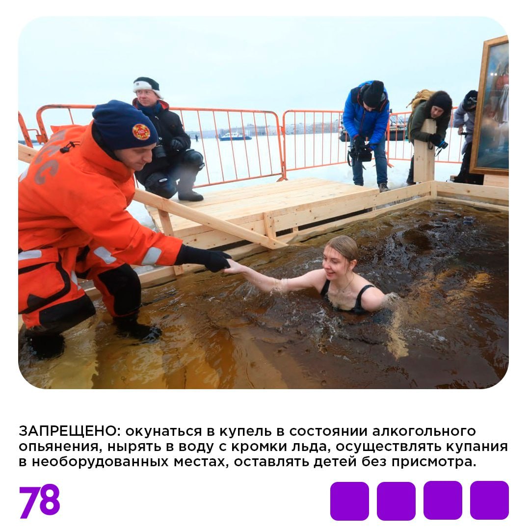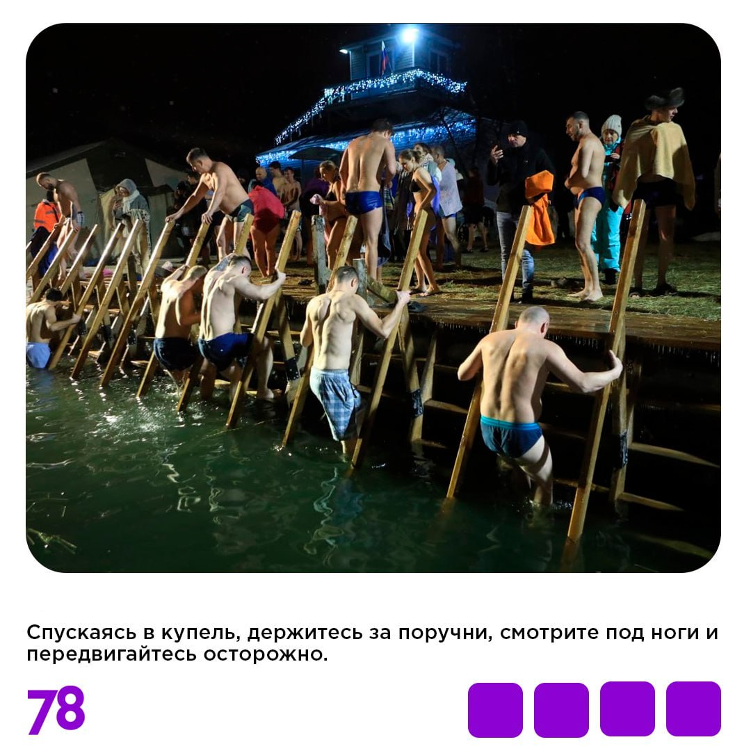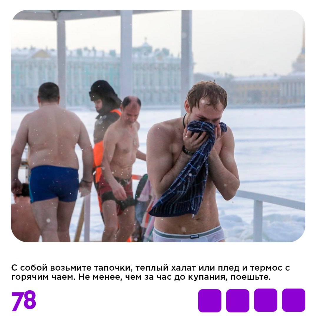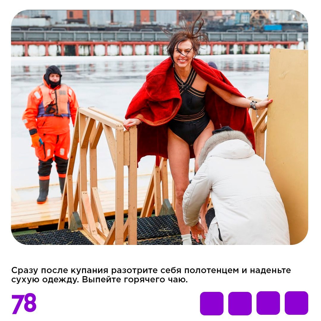В карточках рассказываем, как подготовиться к купанию в проруби и сделать процесс максимально безопасным. А на нашем сайте вы найдете полный список согласованных администрацией города адресов с официальными купелями, на которых будут дежурить спасатели и медики.