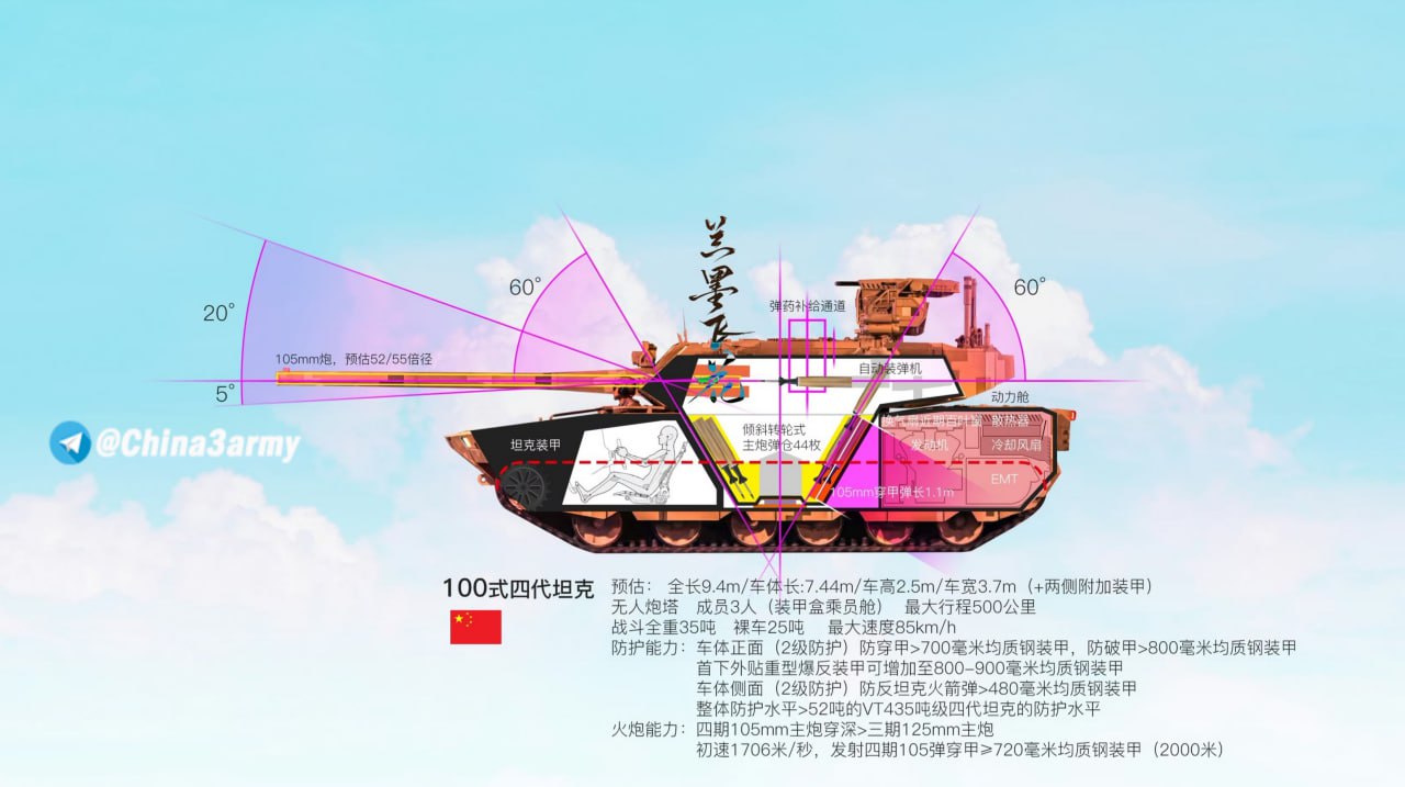 Появились данные по китайскому танку Тип 100 с необитаемой башней. Представлен впервые был на военном параде в Пекине в прошлом году.