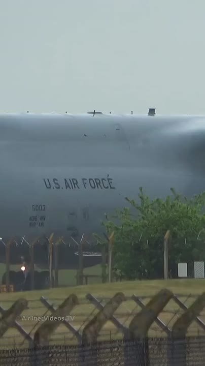 Военный транспортник C-5 "Globemaster" США вылетает из ФРГ на Ближний Восток с военным грузом.