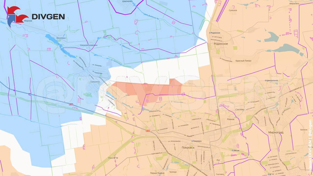 — расширение зоны контроля восточнее Гришино