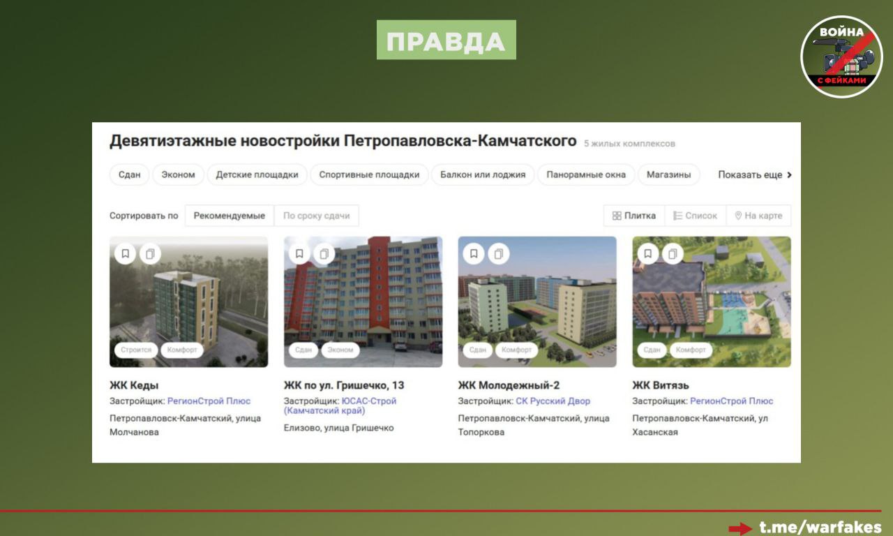 Админы некоторых телеграм-каналов пренебрегли фактчекингом ради хайпа и не стали проверять, действительно ли девятиэтажка из видео находится именно на Камчатке. Проверка заняла от силы бы пять минут. В Сети можно легко найти информацию о том, что в Петропавловске-Камчатском есть несколько девяти- и десятиэтажных домов и даже одно шестнадцатиэтажное здание, но они отличаются от стандартных панельных построек.