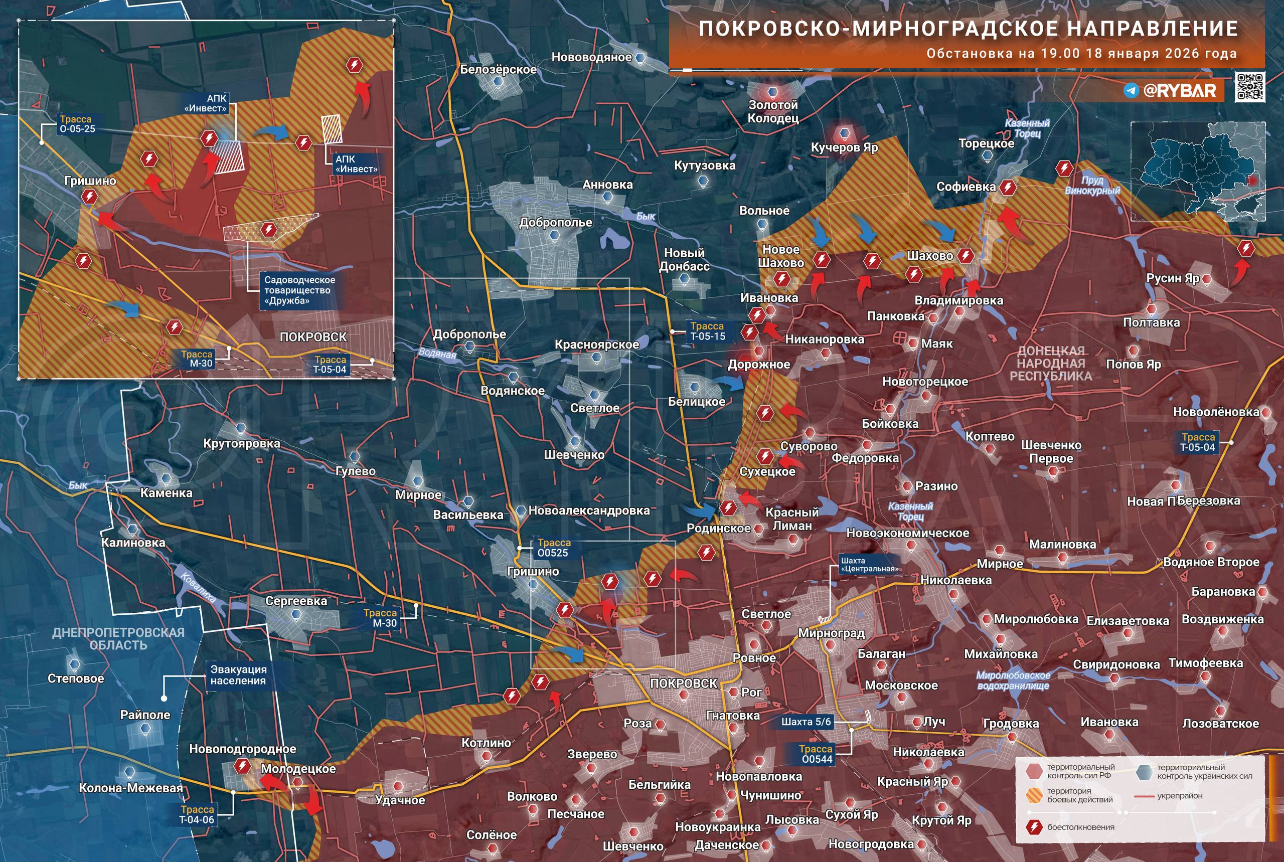 Российские войска постепенно расширяют зону контроля на подступах недавно освобожденных городов. Наиболее ожесточенные бои идут в окрестностях Гришино, откуда ВСУ пытаются заводить пехоту на окраины Покровска.