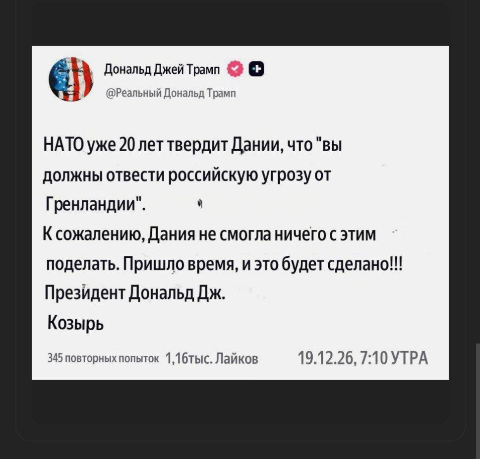 Шарахнутый на всю бошку дед-пендос призвал устранить... российскую угрозу Гренландии