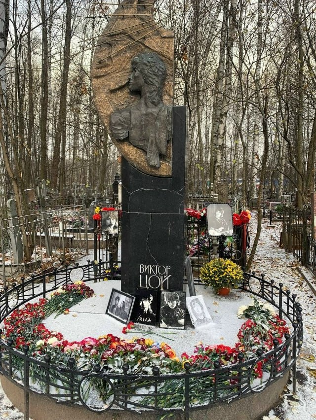 Тело женщины обнаружили на могиле Виктора Цоя на Богословском кладбище в Петербурге. Она отравилась паленым алкоголем, который распивала там с друзьями.