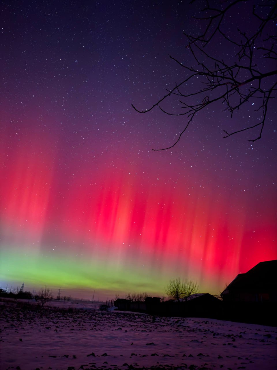 Супербуря породила необычные сияния, которые видели практически по всей России и в Европе. Красный цвет полярного сияния часто бывает признаком сильной магнитной бури, вызванной солнечными вспышками.