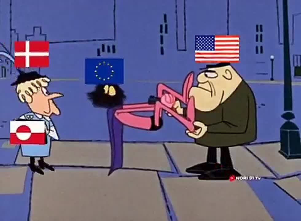 В чем сейчас точно нет недостатка, так это в продуктах народного творчества, связанных с действиями Европы и США относительно Гренландии. Вот один из многочисленных образчиков.